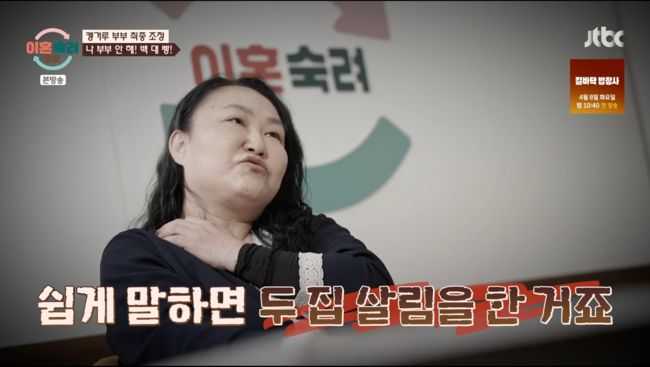 양나래 변호사는 남편이 두 집 살림을 했다는 점을 밝히며 시어머니한테 돈이 많이 들어갔다는 점을 언급했다. 아내는 “나는 100만원 만 주고”라며 나머지 돈은 시댁으로 보냈다고 말하기도.