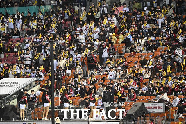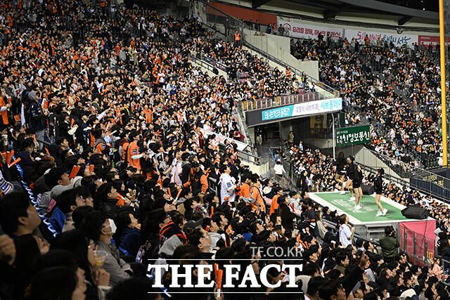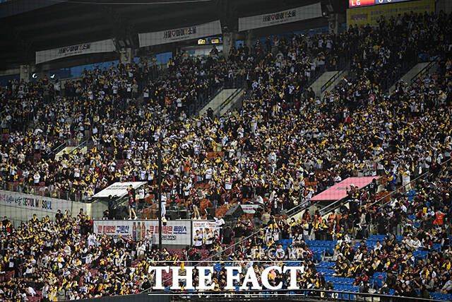 [더팩트ㅣ잠실야구장=박헌우 기자] 2025 KBO리그 한화 이글스와 LG 트윈스의 경기가 27일 오후 서울 송파구 잠실야구장에서 열린 가운데 관중들이 응원하고 있다.