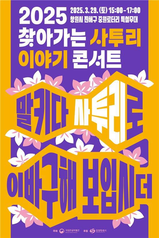 [서울=뉴시스]강은정 수습 기자 = 국립한글박물관은 29일 경남 창원 진해구 중원로터리에서 '찾아가는 사투리 이야기 콘서트-말키 다 사투리로 이바구해 보입시더(모두 다 사투리로 이야기해봅시다라는 뜻)'를 개최한다고 28일 밝혔다.