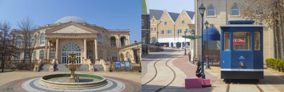 캠퍼스 안은 그야말로 유럽이다. 진입로 양쪽으로 들어선 이국적 건물들은 카페와 체험 공방, 갤러리, 슈퍼마켓 등이다. 입장료라도 내야 할 것 같은 시설이지만 주차는 물론이고 캠퍼스 입장 자체도 무료다. 진입로가 끝나는 지점에는 유럽에서나 볼 듯한 트램이 서 있다. 그리고 또 하나의 성문을 지나면 맞은편에 넓은 광장과 ‘City Hall’ 건물을 만난다. 영국 빅토리아 시대의 건축물을 연상케 한다. 캠퍼스 내의 ‘Concert Hall’ 역시 ‘City Hall’과 더불어 캠퍼스에서 가장 주목받는 건축물이다. 이 밖에도 다양한 건축물들이 들어서 있어 유럽의 마을을 산책하는 느낌이 든다.