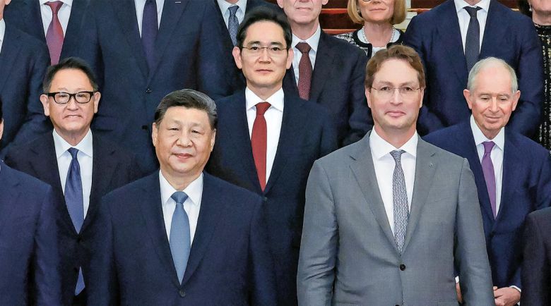 베이징서 시진핑 만난 이재용 시진핑 중국 국가주석(앞줄 왼쪽)이 28일 베이징 인민대회당에서 올라 셸레니우스 독일 메르세데스벤츠그룹 이사회 의장(앞줄 오른쪽), 도요다 아키오 일본 도요타그룹 회장, 이재용 삼성전자 회장, 미국 사모펀드 블랙스톤의 스티븐 슈워츠먼 최고경영자(CEO·둘째 줄 왼쪽부터) 등 주요국 대기업 경영자 40여 명을 만났다. 시 주석은 “중국에 투자하는 것은 미래에 투자하는 것”이라며 “외국 기업에 중국 기업과 동등한 대우를 보장하겠다”고 강조했다. 베이징=신화 뉴시스 |