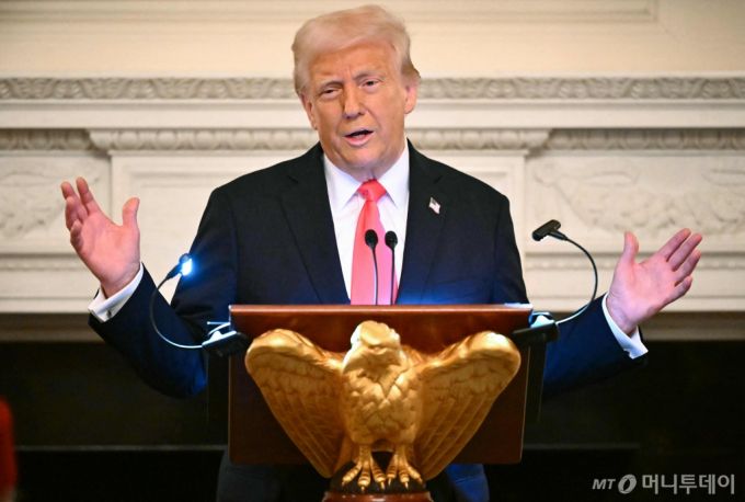 (워싱턴 AFP=뉴스1) = 도널드 트럼프 미국 대통령이 27일(현지시간) 워싱턴 백악관에서 라마단을 맞아 열린 이프타르 만찬에 참석해 연설을 하고 있다. 2025.03.28 ⓒ AFP=뉴스1 Copyright (C) 뉴스1. All rights reserved. 무단 전재 및 재배포, AI학습 이용 금지. /사진=(워싱턴 AFP=뉴스1) |