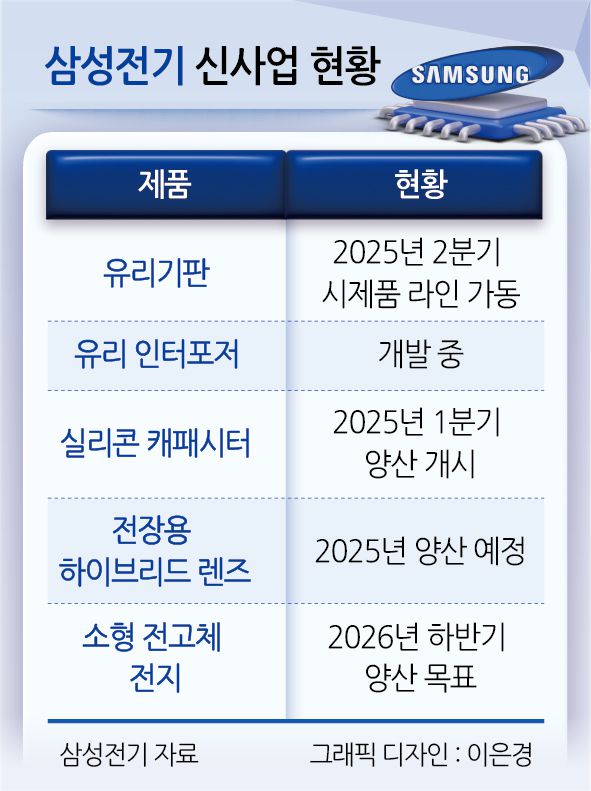 삼성전기는 파일럿 라인을 구축한 세종사업장에서 올 2분기부터 시제품을 만들 계획이다. 2027년 이후 양산을 목표로 하고 있다.