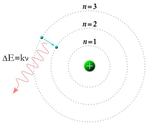 가령 100, 250, 400···등 몇 가지 에너지만 가질 수 있어서 에너지 100의 전자에 더도말고 딱 150을 더 줘야만 에너지 250이 되고 그에 맞는 궤도로 오를 수 있습니다. 151처럼 어중간하게 더 많은 에너지를 줘받자 오히려 전자는 이를 흡수하지 못하며 궤도도 바뀌지 않습니다. 아예 400의 에너지를 만들 수 있는 300을 주입해야만 전자가 그에 맞춰 궤도를 높입니다. 전자가 에너지를 방출해서 궤도를 낮출 때도 마찬가지고요.