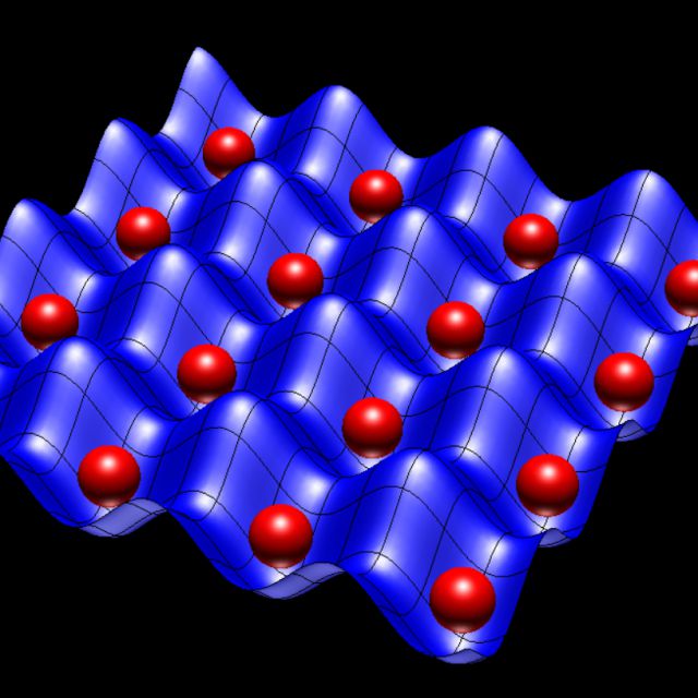 전기는 양(+)극에서 음(-)극으로 흐른다고 하잖아요. 이때 양극은 산봉우리, 음극은 산골짜기라서 전기 입자가 높은 양극에서 낮은 음극으로 굴러떨어진다고 비유할 수 있습니다. 전자기장(場)은 양극과 음극이 만드는 가상의 지형지물로 이해할 수 있습니다. 전자기장을 잘 조절해 움푹 팬 분지 지형(안장점)을 만들고 그 안에 입자를 얌전하게 가둘 수도 있겠죠. 레이저로 입자 하나하나를 정교하게 제어하는 원리입니다. 큐비트 구현은 역시 입자의 에너지 준위으로 이뤄집니다.