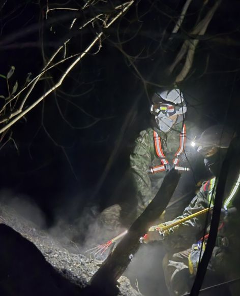 지난 28일 오후 경남 산청 산불 야간 진화 지원작전에 투입된 39사단 장병들이 불씨를 정리하고 있다. [사진=연합뉴스] |