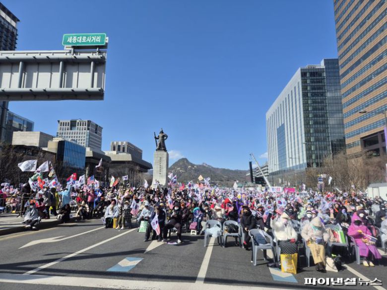이날 경찰에 따르면 전광훈 사랑제일교회 목사가 이끄는 자유통일당 등은 세종대로에서 윤 대통령의 탄핵 반대 집회를 열었다. 집회 참가자는 오후 2시 기준 경찰 비공식 추산으로 2만5000명이다. 경찰은 이에 기동대 52개부대, 경찰관 3300여명을 배치해 만일의 사태에 대비하고 있다. 집회·행진 구간 주변에는 교통경찰 220여명을 배치해 차량 우회 등 차량 소통 관리에 나섰다.