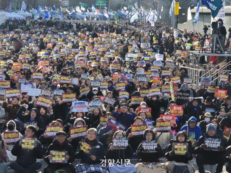 29일 윤석열 대통령 탄핵 촉구를 위해 집회에 참여한 이모씨(46)가 이렇게 말했다. 윤석열 대통령 탄핵심판 선고기일이 지정되지 않아 사실상 선고가 4월로 미뤄지면서, 탄핵 인용을 촉구하는 시민들은 이날도 집회와 행진을 이어갔다.