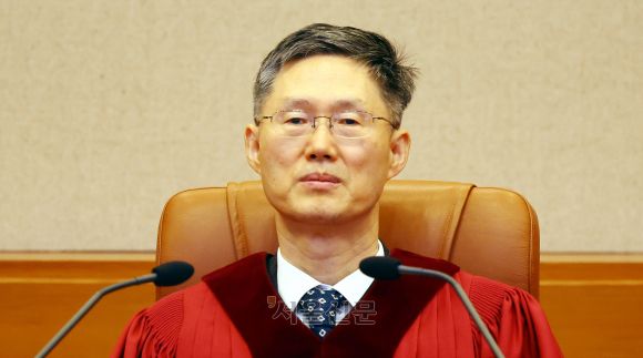 지난 13일 오전 서울 종로구 헌법재판소에서 문형배 헌법재판소장 권한대행이 심판정 자리에 앉고 있다. 2025.3.13 홍윤기 기자 |