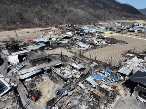 29일 경북 안동시 임하면 추목리 마을이 전부 불에 타 있다. |