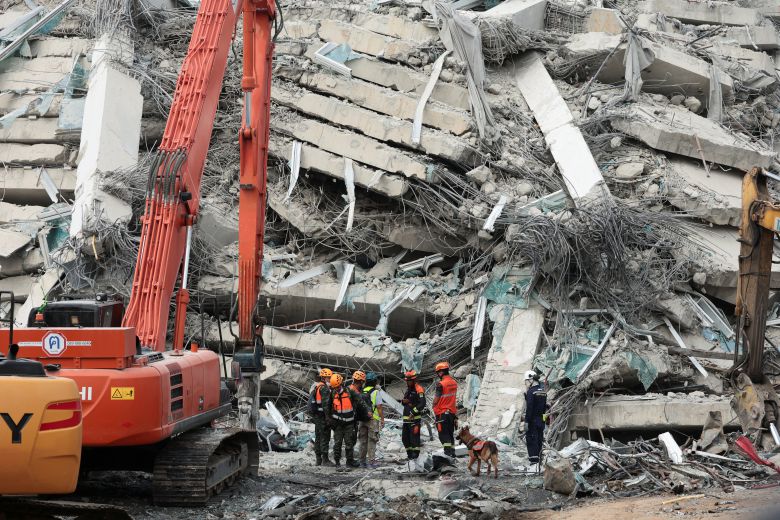 공사중 지진에 무너진 태국 방콕의 감사원 청사 건물 더미에서 30일 구조작업이 이뤄지고 있다./로이터 연합뉴스 |