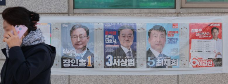 구로구청장 후보들 4·2 재보궐선거 투표를 앞둔 30일 서울 구로구청 인근에 구로구청장 선거 벽보가 게시돼 있다. 연합뉴스 |