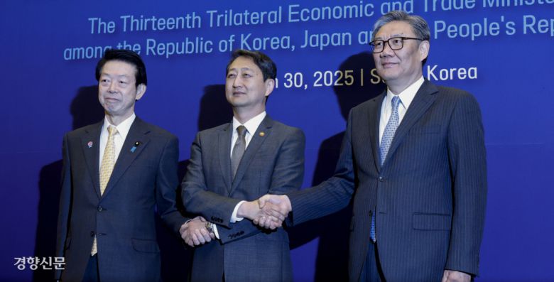 산업통상자원부는 30일 안덕근 장관, 왕원타오 중국 상무부장, 무토 요지 일본 경제산업상이 서울 중구 대한상공회의소에서 제13차 한·중·일 경제통상장관회의를 개최했다고 밝혔다. 한·중·일 통상장관회의는 2019년 12월 베이징 회의 이후 5년여 만이다.