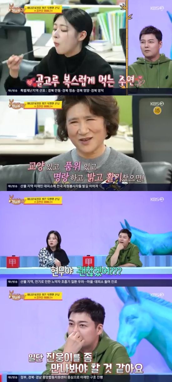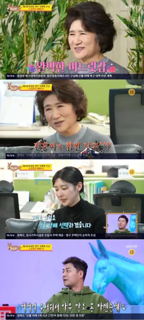 MC들은 김진웅 어머니가 김진웅의 짝으로 홍주연을 점찍은 것 같다고 입을 모았다.