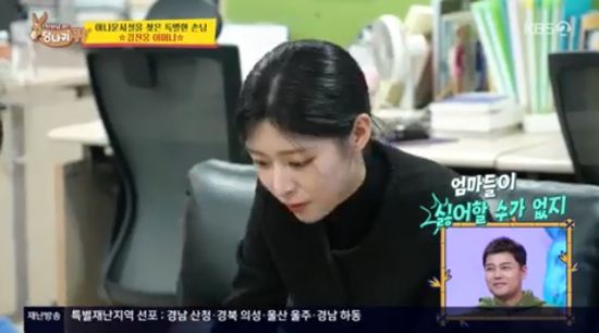 엄지인은 김진웅 어머니에게 어떤 일을 하셨는지 물어봤다. 김진웅 어머니는 중학교 영어교사였다고 했다.