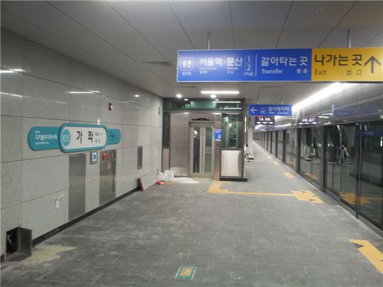 경의선 DMC~공덕 구간 개통으로 신설된 가좌역 지하철탑승구. |