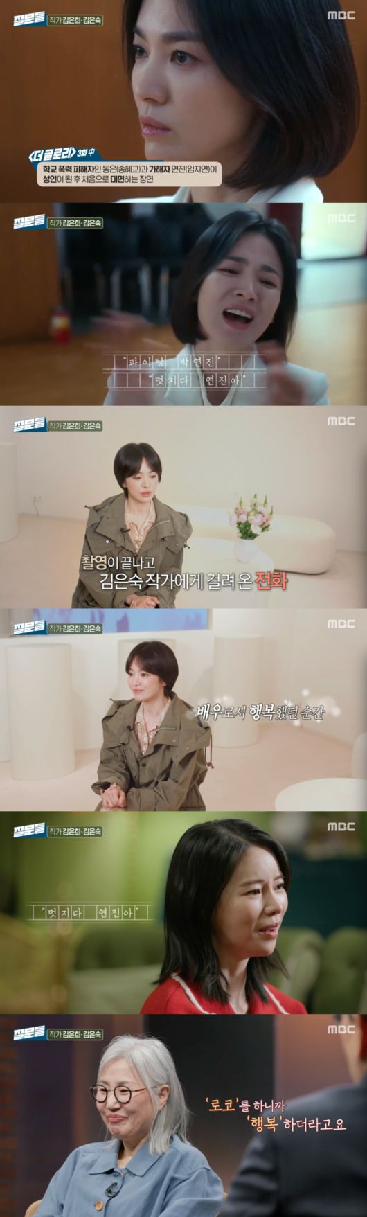 이에 송헤교는 “그 신이 촬영 중반 때였다. 제가 동은에게 빠져들었을 때라서. 온전히 현장에서 느끼는 대로 연기했다. 저도 모르게 그 순간 문동은이 됐다. 특별한 계산 없이도. 대본을 보고 느낀 대로, 현장에서 느낌이 오는 대로 연기했다”고 당시를 떠올렸다.