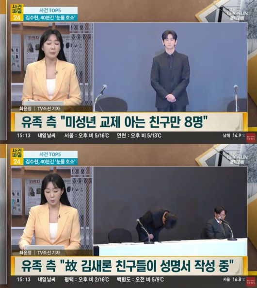 지난 1일 방송된 TV조선 ‘사건파일 24’는 유족 측 변호사의 말을 인용해 “‘김수현에 진심어린 사과를 기대했는데 유족 측에 대한 사과가 없어 아쉽다’는 입장을 전해왔다”라고 밝혔다.