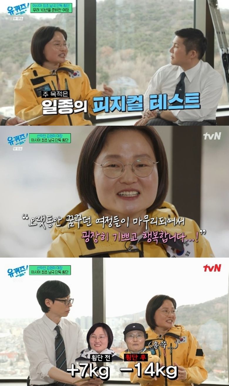 2일 방송된 tvN 예능 ‘유 퀴즈 온 더 블럭’(이하 유퀴즈) 287회에는 아시아 최초로 남극 대륙을 무동력 단독 횡단한 산악인 김영미 대장이 게스트로 출연했다.