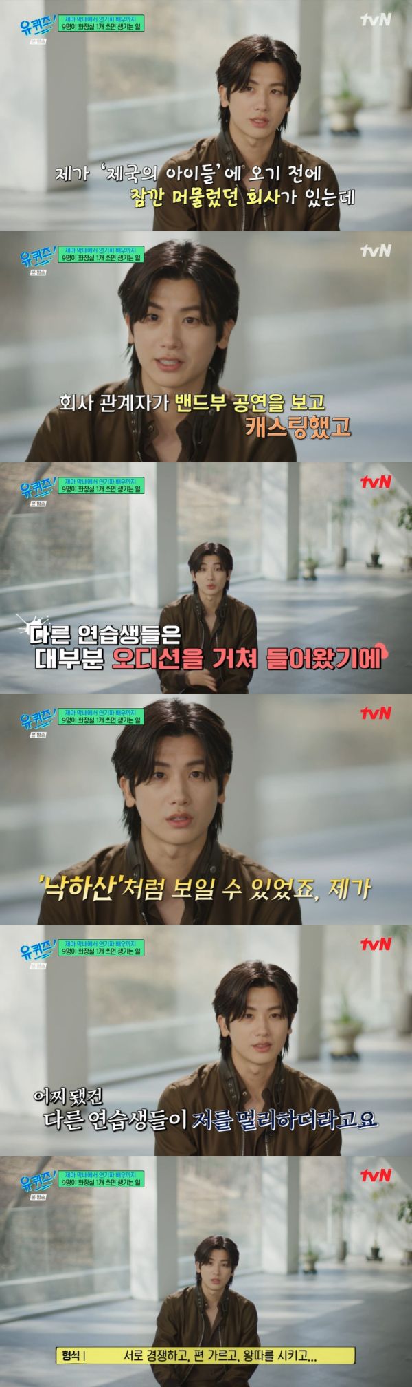 이날 박형식은 "제국의아이들 데뷔 전에 잠깐 머물렀던 회사가 있다"며 "그 회사가 처음에 저를 밴드 대회에서 캐스팅한 곳이었다"고 떠올렸다.