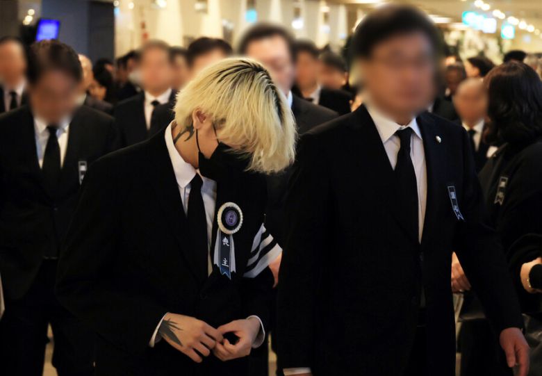 4일 오전 부산 해운대백병원 장례식장에서는 장 전 의원의 발인식이 엄수됐다. 이날 노엘은 상주로 부친의 마지막 길을 배웅했다.