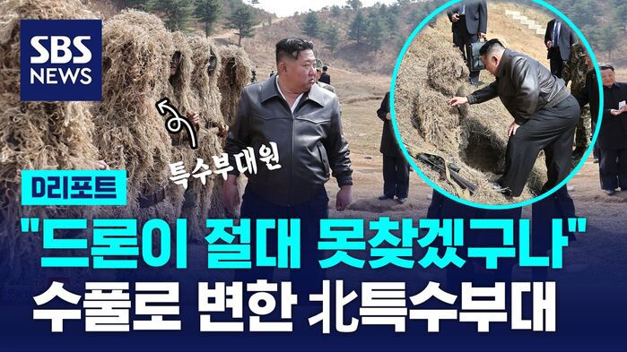 북한이 수풀로 위장한 특수부대원들의 훈련 모습을 공개했는데, 드론 공격을 피하는 방법을 탐구 중이라는 관측이 나옵니다.
