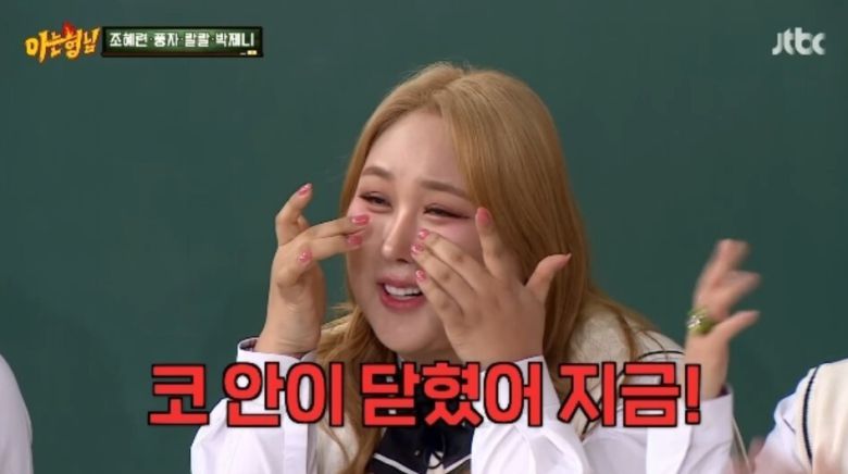풍자는 코 성형 부작용으로 인해 코 안이 닫혀 숨이 잘 쉬어지지 않는다고 설명했다.