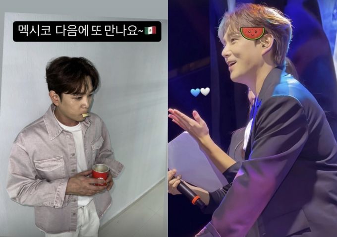 강인은 공연을 마치고 무대 뒤에서 과자 먹는 사진을 올리며 "멕시코 다음에 또 만나요"라는 애정 가득한 메시지를 전했다.