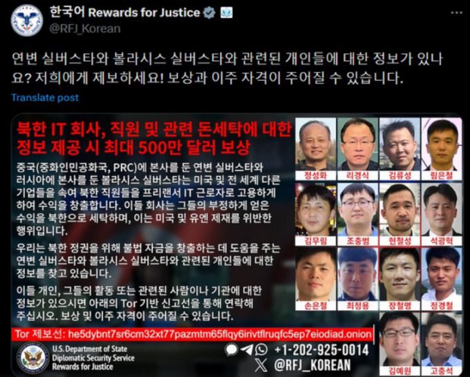 북한의 IT 위장 취업에 대한 미국 국무부의 공개 수배 포스터. 사진은 기사와 직접 관계 없음. [사진=미국 국무부]