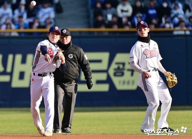 두산 내야수 이유찬의 엔트리 말소 사유는 부진이 아닌 부상이다. 이유찬은 6일 사직 롯데전에 1번타자 겸 좌익수로 선발 출전해 경기 도중 교체됐다. 4회초 1사 2·3루에서 양석환의 중견수 희생플라이 때 홈으로 쇄도하다가 포수 유강남과 충돌하면서 고통을 호소했다. 5회초 대타 김인태와 교체되면서 자신의 임무를 마쳤다.