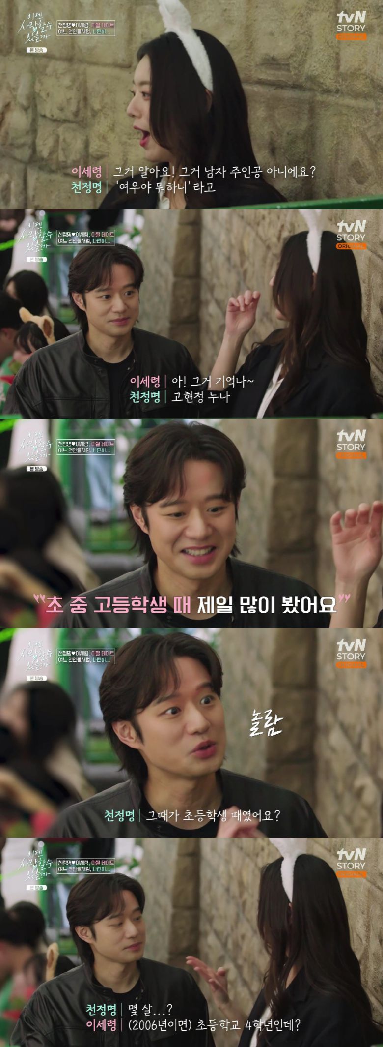 이어 천정명이 "그때가 초등학생 때였냐"고 깜짝 놀라자, 이세령은 "(2006년이면) 초등학교 4학년이다"며 두 사람의 나이차를 실감케 했다.