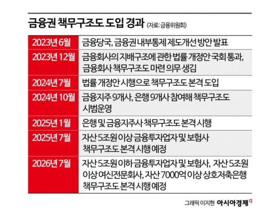 편집자주올해부터 금융권에 '책무구조도'가 도입되면서 업계의 긴장감이 높아지고 있다. 책무구조도는 금융사 임원 각자가 내부통제 대상 업무의 범위와 내용을 스스로 명확히 설정하는 제도다. 정부는 반복되는 금융사고에 대응해 사전 예방 차원에서 이 제도를 마련했지만, 현장에서는 강화된 책임 부담과 징계 우려로 불안감을 호소하고 있다. 작은 실수 하나로 자리에서 물러나야 할 수 있다는 두려움도 크다. 이번 기획에서는 책무구조도의 도입 배경과 현황을 짚고, 제도가 보다 효율적이고 합리적으로 정착하기 위한 개선 방향을 모색해본다.