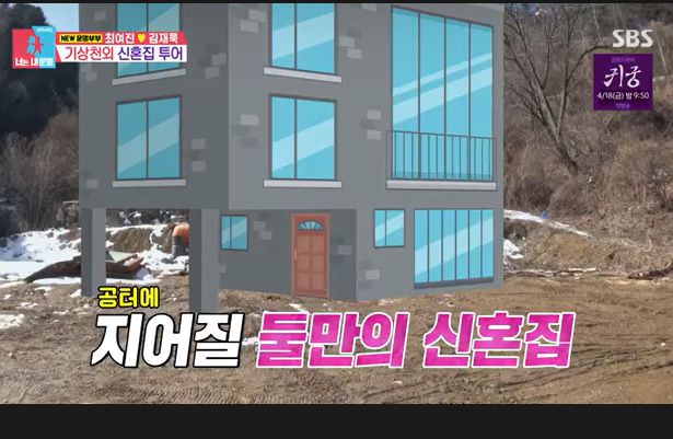 이어 역대급 강 뷰를 마주할 신혼집을 본 스튜디오 MC들은 놀라움을 금치 못했다. 알고보니 텅빈 공터. 캠핑장에서 조금 올라 비어있는 땅에 신혼집을 지을 생각이었다. 예비남편은 "함께 살 신혼집을 지어보려한다"며 깜짝,직접 구상한 신혼집 도면을 공개했다. 무려 3층 단독주택이었다.
