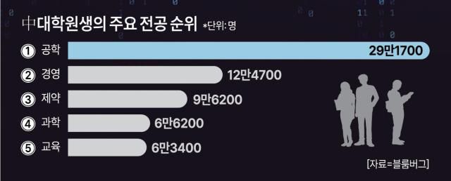 중국 대학원생 주요 전공 순위 [자료=블룸버그] |