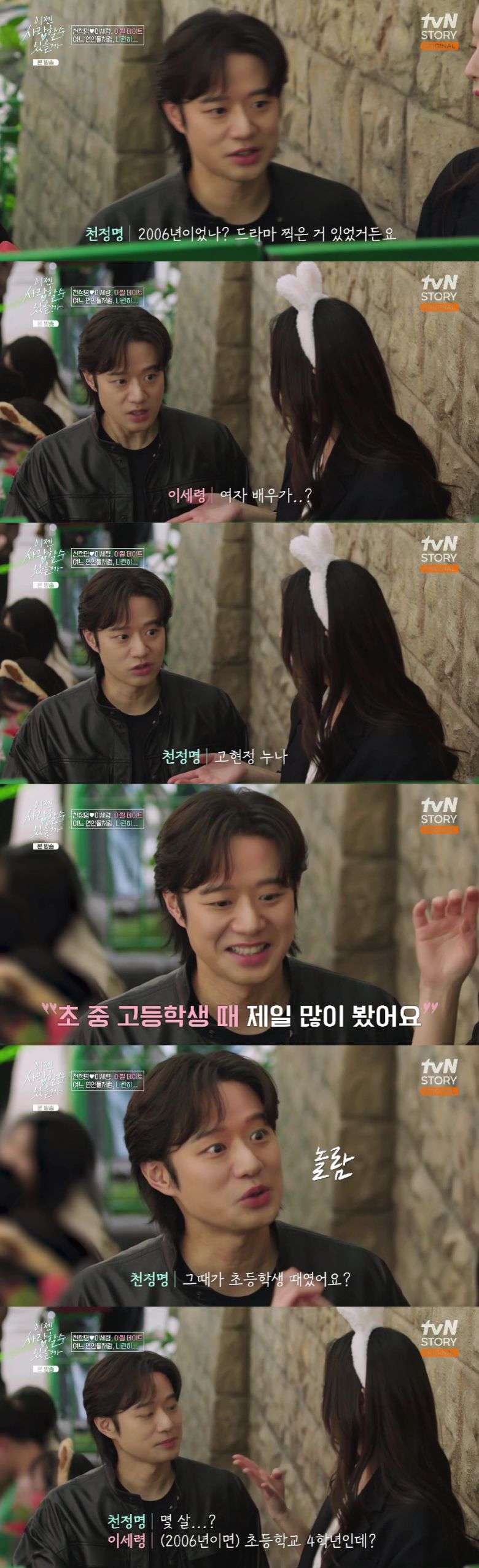 이어 천정명이 "그때가 초등학생 때였냐"고 깜짝 놀라자, 이세령은 "(2006년이면) 초등학교 4학년이다"며 두 사람의 나이차를 실감케 했다.