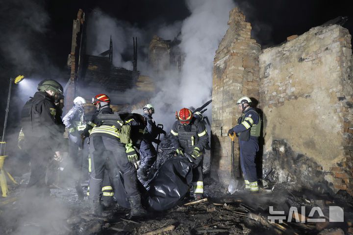 [하르키우(우크라이나)=AP/뉴시스]우크라이나 하르키우에서 3일 구조대원들이 러시아군의 드론 공격으로 숨진 주민의 시신을 수습하고 있다. 영국과 프랑스는 4일 블라디미르 푸틴 러시아 대통령이 우크라이나에서의 전투를 중단시키기 위한 휴전 협상을 질질 끌고 있다고 비난하면서 푸틴은 미국에 즉각 답변을 해야 한다고 주장, 러시아에 대한 압력을 강화했다. 2025.04.08.
