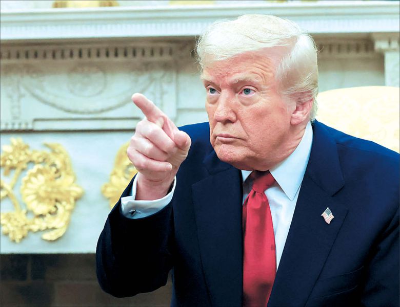 도널드 트럼프 미국 대통령이 7일(현지시간) 미 워싱턴 백악관 오벌 오피스에서 열린 베냐민 네타냐후 이스라엘 총리와 회담 중 발언하고 있다. 트럼프 대통령은 이날 사회관계망서비스(SNS)에 “8일까지 중국이 보복 관세 34%를 철회하지 않으면 미국은 중국에 50%의 추가 관세를 부과할 것”이라며 “9일부터 발효될 것”이라고 경고했다. [로이터]
