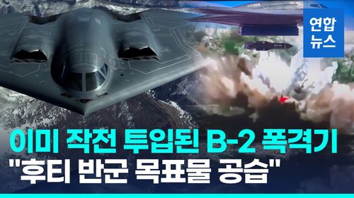 (서울=연합뉴스) 중동 지역 군사력 증강 차원에서 인도양 기지에 전진 배치된 미국 B-2 스피릿 스텔스 전략폭격기가 예멘의 친이란 반군 후티 공격을 이미 시작한 것으로 전해졌습니다.