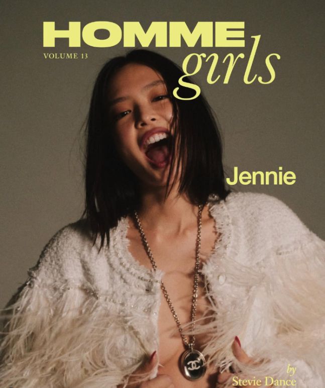 8일 공개된 패션 매거진 옴므걸스 화보에서 제니는 조개껍데기를 연상시키는 소품으로 상반신을 가리는가 하면, 재킷만 걸친 채 포즈를 취하며 시선을 압도한다.