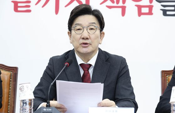 권성동 국민의힘 원내대표가 2일 오전 국회에서 열린 비상대책회의에서 발언하고 있다. 임현동 기자/20250407 |