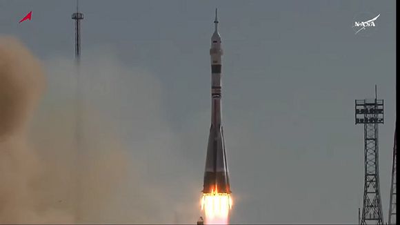 소유즈 우주선이 8일 발사되고 있다. [사진=NASA] |