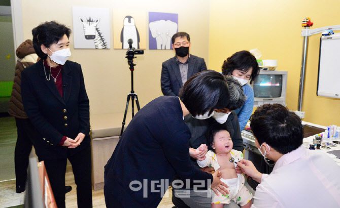 지영미 질병관리청장(사진 왼쪽)이 지난 2023년 로타바이러스 국가예방접종사업 진행 현황을 파악하기 위해 청주시 소재 위탁의료기관에 방문한 모습. 소아청소년과의 주 수입원은 백신 접종인데, 최근 저출산이 지속되면서 신생아 접종 건수도 줄어들고 있다.(사진=질병관리청)