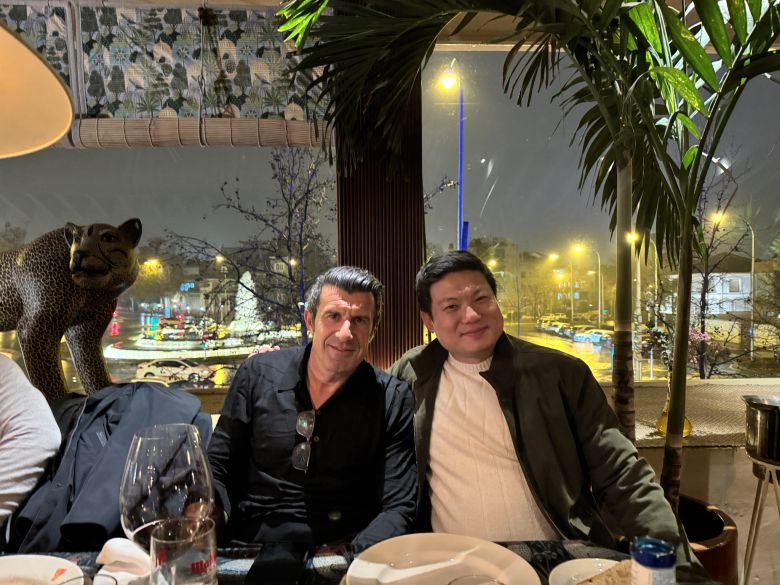 축구대표팀 통역 출신 이윤규(오른쪽) 넥슨 부장은 축구 레전드들과 인연을 이어가고 있다. 포르투갈에서 피구의 식사 초대를 받은 이 부장.[사진 이윤규] |