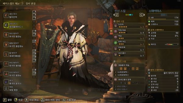 기본 스킬 구성도 탄탄하다. 특히 공격 스킬 중 효율이 높은 '도전자'를 장식품 없이도 5레벨까지 확보한다. 또한 몬스터의 공격 타이밍에 맞춰 상쇄나 카운터를 성공시키거나 하이퍼 아머 판정을 활용할 경우 공격력이 상승하는 '역습' 스킬이 탑재돼 있다.