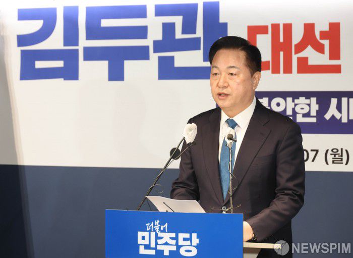 [서울=뉴스핌] 김학선 기자 = 김두관 전 더불어민주당 의원이 7일 서울 여의도 더불어민주당 당사에서 대선출마 기자회견을 하고 있다. 2025.04.07 yooksa@newspim.com