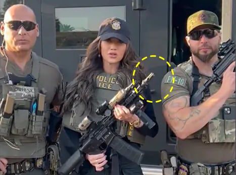 지난 8일 불법 이민 범죄자 추적 현장에 방문한 크리스티 놈 미국 국토안보장관이 총을 쥔 모습./엑스(X·옛 트위터)