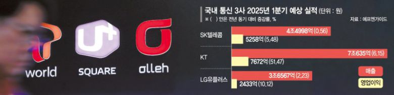 국내 이동통신3사(SK텔레콤·KT·LG유플러스)의 올 1·4분기 영업이익이 1조5000억원을 넘어설 것으로 전망된다. 통신사들은 작년 인력 구조조정 등의 일회성 비용을 털어내고 인공지능(AI) 투자를 확대하며 본격 실적으로 이어지게 한다는 방침이다.