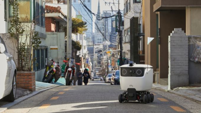 딜리는 수납이 가능한 박스 형태의 자율주행 로봇이다. 카메라와 라이다(LiDAR) 센서로 주변 사물과 거리 정보를 파악해 복잡한 도심에서도 안전하게 운행할 수 있다. 앞바퀴와 뒷바퀴가 독립적으로 조향되는 다중조향모드(Dual Steering)를 지원해 제로턴(제자리 회전)이 가능하다. 모든 바퀴에 독립 서스펜션을 장착해 비포장도로나 방지턱 등 불규칙한 도로 면에서도 속도를 유지하고 음식에 가해지는 충격을 최소화한다. IP54 등급의 방수·방진 성능을 갖춰 계절에 따른 온도 변화, 비와 눈 같은 열악한 기상 조건에 대응할 수도 있다. 사람이 빠르게 걷는 속도와 비슷한 초속 1.5m로 최대 20㎏의 물건을 적재한 채 운행할 수 있다.