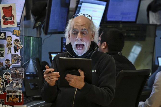 9일(현지시간) 뉴욕증권거래소에서 트레이더가 깜짝 놀란 표정을 짓고 있다. (사진=AFP)