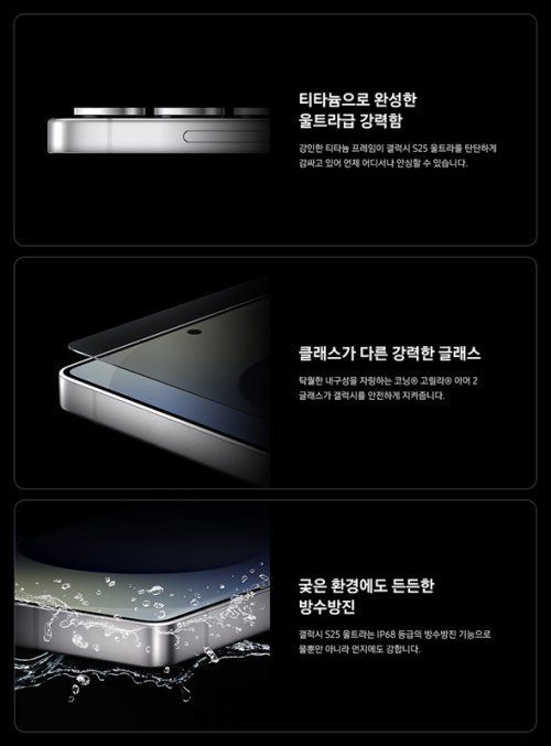 견고한 프레임과 디스플레이, IP68 등급 방수방진 기능으로 강력한 내구성을 갖춘 ‘갤럭시 S25 울트라’ |